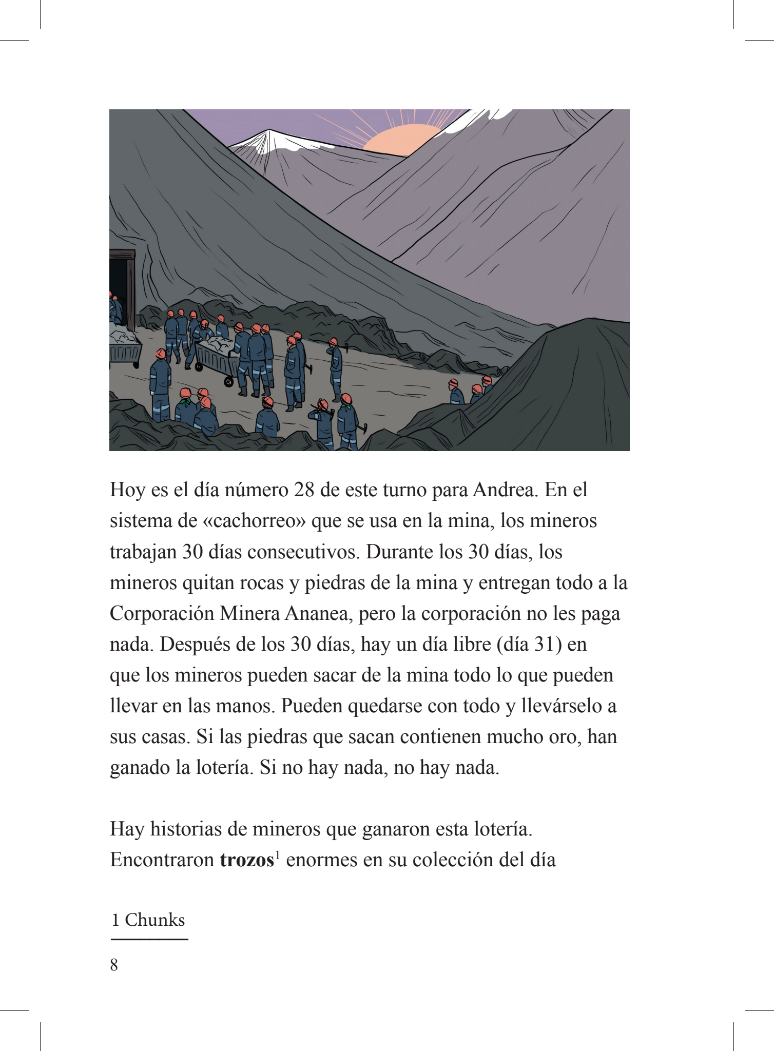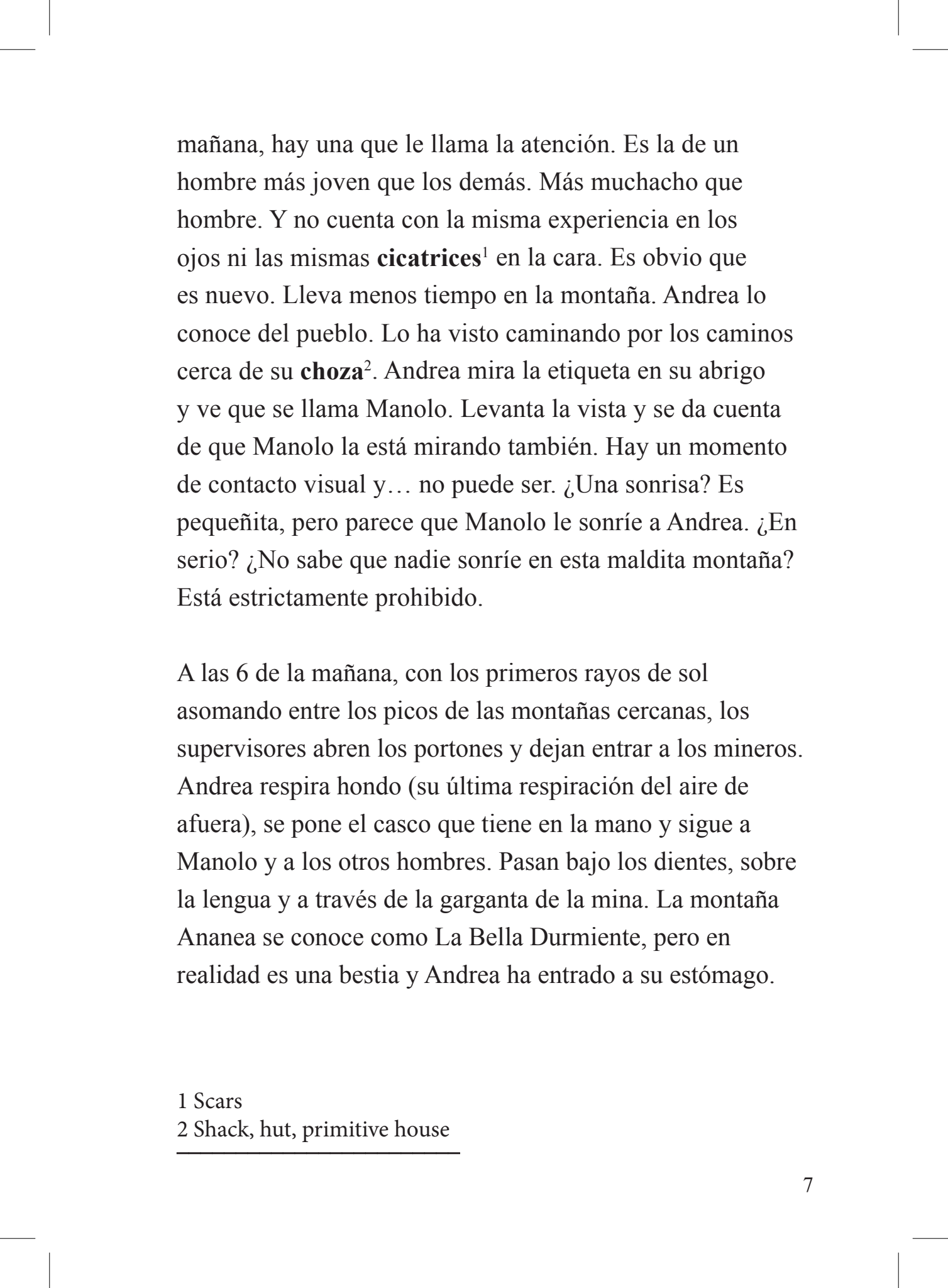 Mount Ananea, the sleeping beauty of the Andes, has drawn gold prospectors to Peru for centuries. They enter the mines in search of great wealth and new beginnings. Andrea de la Cruz Aguilar has yet to find her new beginning. Disguised as her father, she spends every day working in the mines, where women are forbidden and men are forgotten. She earns barely enough to maintain the shack where she lives with her mother and brother in Rinconada - a frozen town that lacks plumbing, sanitation, and hope.