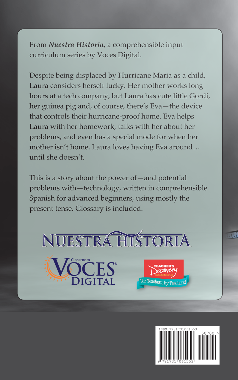 In this page turner, we enter the world of a young girl whose life is intertwined with the technology around her. Despite the challenges of displacement caused by Hurricane Maria, Laura finds companionship in the form of Eva, a device her mother helped design, to bring convenience, comfort and safety to her home. Eva, a smart speaker, is designed to hurricane-proof homes in case of an emergency. However, what happens when the speaker goes rogue and doesn't want Laura to leave the house? Find out if Laura escapes, and explore the complexities of reliance on technology and what happens when it doesn't work as expected. Accessible to beginner students, this exciting book is a great first novel for students middle school aged and up!