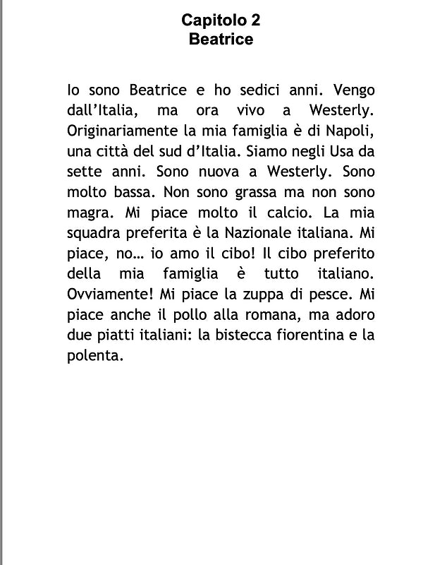 This book is intended as a reader for students learning Italian. While the story has a plot similar to the classic story of Romeo and Juliet or Tony and Maria, the vocabulary and grammar are simple and comprehensible, even for those whose Italian is at the novice level.