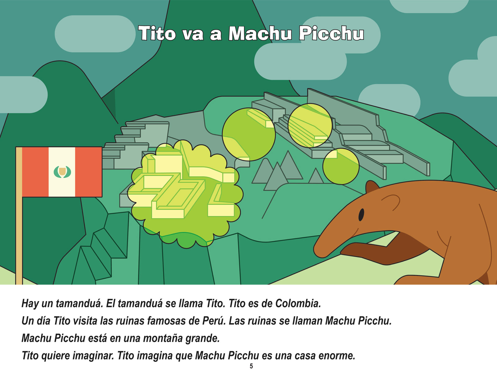In this reader, students are treated to a duo of stories, starring two adorable animals, that spark the imagination and warm the heart. Tito, with his incredible imagination, takes readers through the ruins of Machu Picchu, with his imagination turning the ruins into the home of his dreams (great for reviewing house vocabulary). While in the second story, Ponce explores Venezuela in search of a sport that suits his slow and steady nature. Through Ponce's tale, readers are reminded of the importance of perseverance, self-discovery, and being true to oneself. This book is perfect for younger Spanish students who will connect with the animals on their adventures!