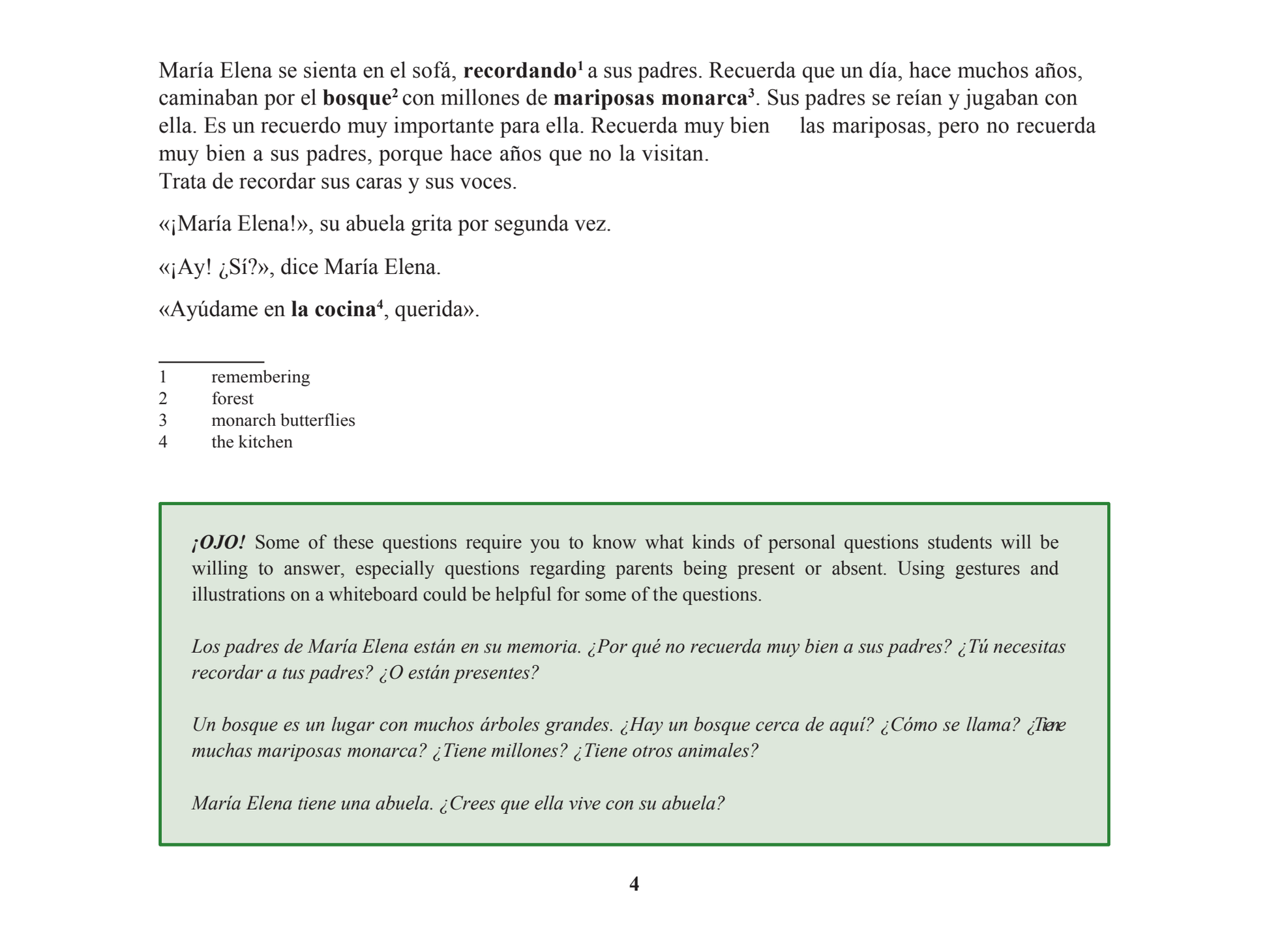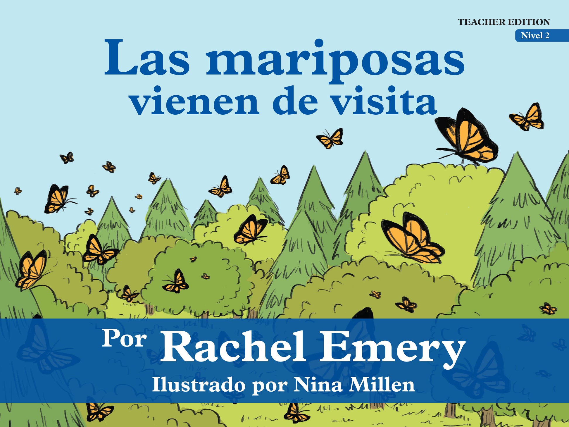 Las mariposas vienen de visita Teacher Edition is a “storytelling” reader set up so that you, the teacher, can read the story to the whole class while students follow along. The Teacher Edition includes embedded scripts with questions and tips for establishing and extending meaning. Each page is double-sided so that teachers can easily read the story and questions to students while they follow along and look at the full-color illustrations on the other side.