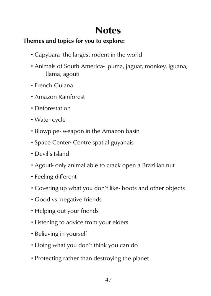 Normal capybaras swim well, but Remy is the only one in French Guiana who can’t—and things don’t look good for him away from the water! This story, set in a Département d’Outre-mer, also includes science and social studies cross-curricular content: students learn about three geographic regions of French Guiana, the Amazon Rainforest, South American animals, the water cycle, and deforestation. The story is supplemented with English-French nonfiction readings, and the entire text contains just 70 unique vocabulary words and lots of cognates.