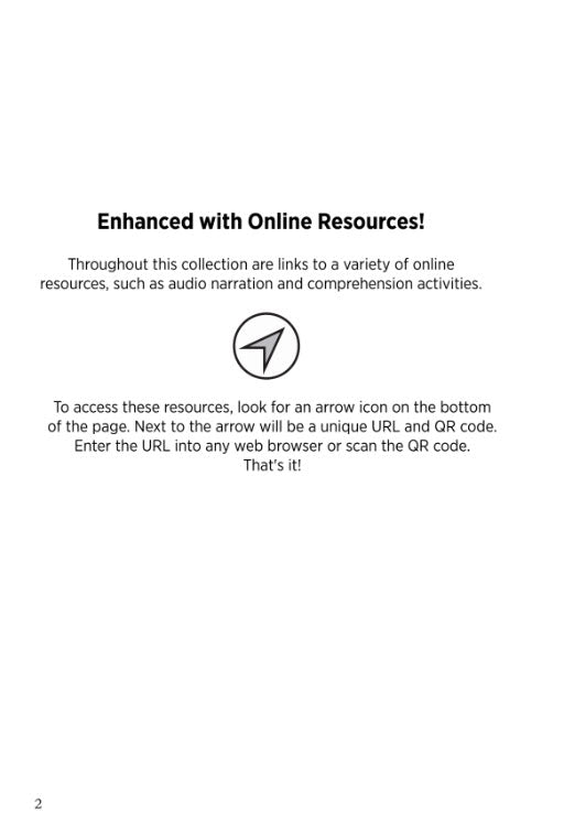 Plus, all of the short stories and articles are enhanced with online resources! Throughout this collection are links to a variety of online resources, such as audio narration and comprehension activities.