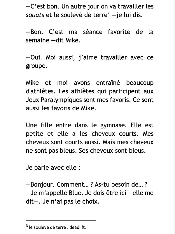 Yet one day, the easy lifting vibe in the gym is upset with the arrival of a new girl, Blue. Blue is definitely strong, which is great for fending off the bullies she has to deal with, but along with her brightly colored hair, she’s also sporting an enormous attitude - one that gets in her way of her moving forward on so many levels, and one that is a potential problem for the folks at the gym.