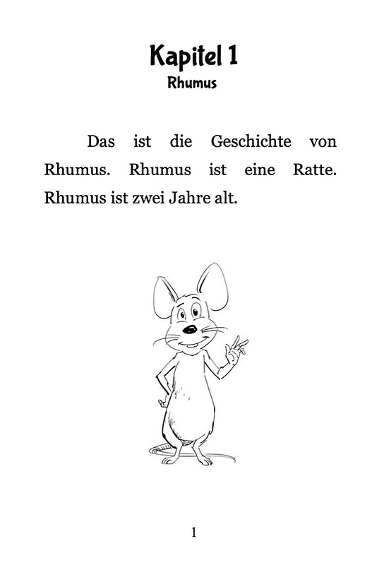 Rhumus is a rat who can read and write. He lives under the streets of Berlin, Germany, with his mom and dad. One day, the rats experience a loud explosion that not only separates Rhumus from his parents but leaves him hard of hearing. How will Rhumus be able to find his parents if he can't hear? Will he venture alone into the streets of Berlin? Can his special talent help him to find his family?